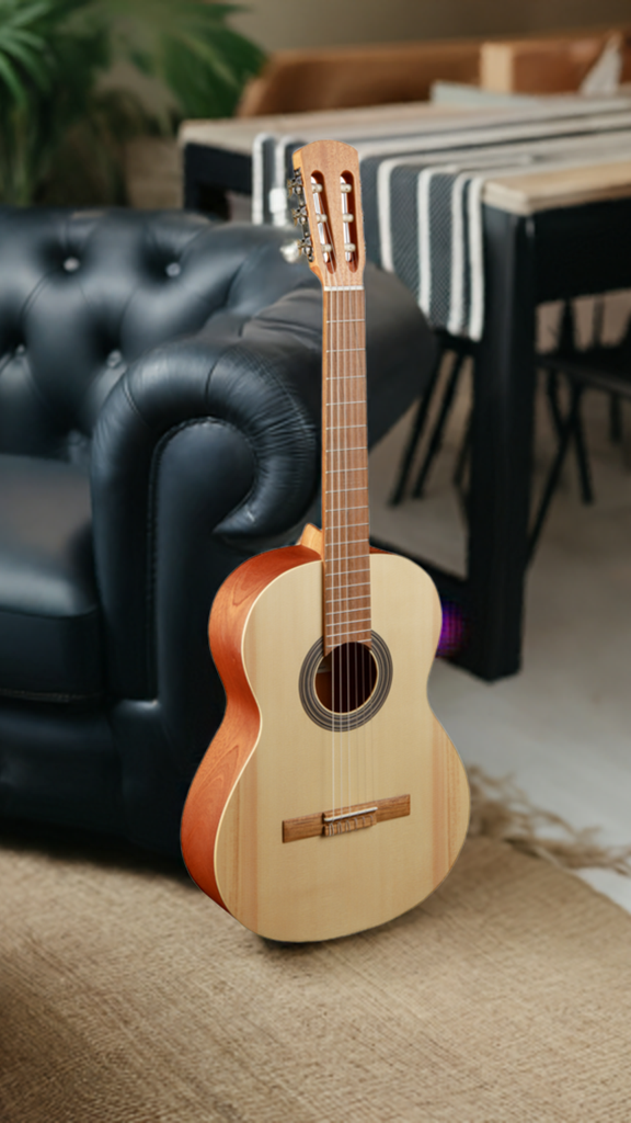 Handgefertigte und nachhaltige Qualität: Jede Laqant-Gitarre ist ein Kunstwerk, handgefertigt in Spanien und mit vollem Engagement für Nachhaltigkeit. Wir verwenden verantwortungsvoll beschaffte Hölzer und umweltfreundliche Produktionsprozesse.