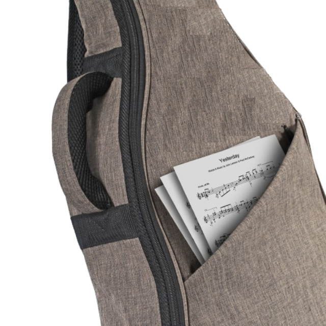 El acolchado de 10 mm de espesor proporciona una barrera contra los impactos, durante su traslado. Esto asegura que tu guitarra clásica esté protegida, al mismo tiempo que el diseño de la funda mantiene una estructura ligera y flexible, fácil de manejar sin comprometer la seguridad del instrumento.